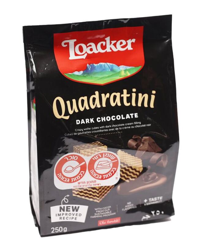 לואקר קוביות וופל בטעם שוקולד מריר 250 גרם