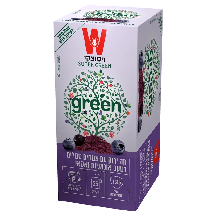 תה ויסוצקי ירוק עם צמחים סגולים בטעם אוכמניות ואסאי 25 שקיקים