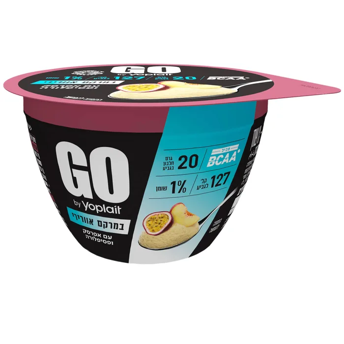 יוגורט גו תנובה אפרסק ופסיפלורה 20 גרם חלבון