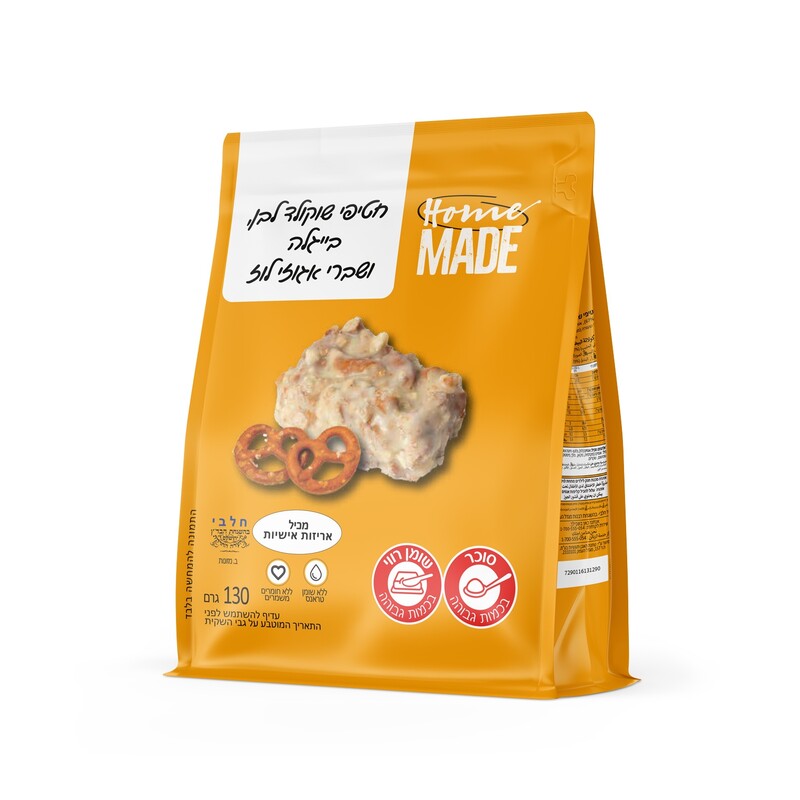 חטיף ביס בר הום מייד בייגלה ושוקולד לבן 130 גרם