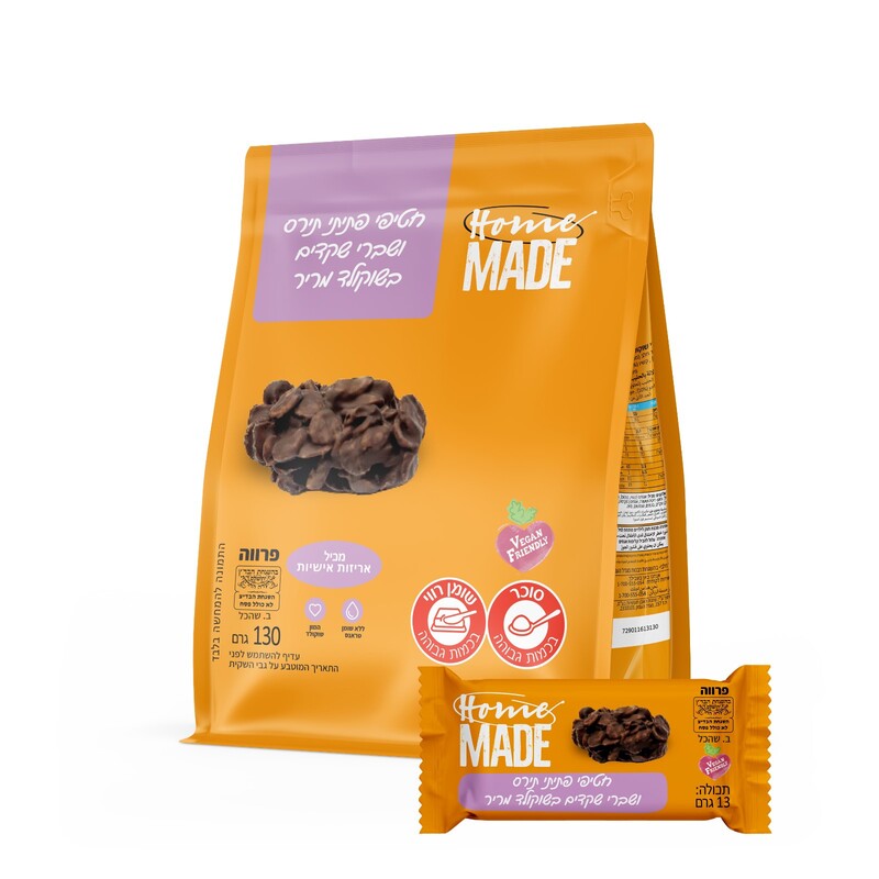 חטיף ביס בר הום מייד פתיתי תירס שקדים מריר 130 גרם