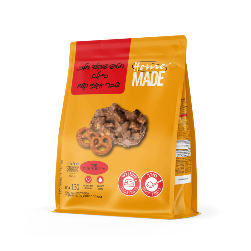 חטיף ביס בר הום מייד קשיו בייגלה שוקולד חלב 130 גרם